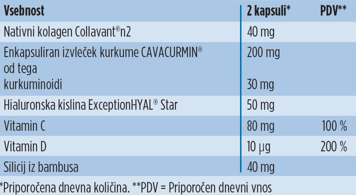 • Trojna moč delovanja: nativni kolagen, hialuronska kislina in kurkumin.